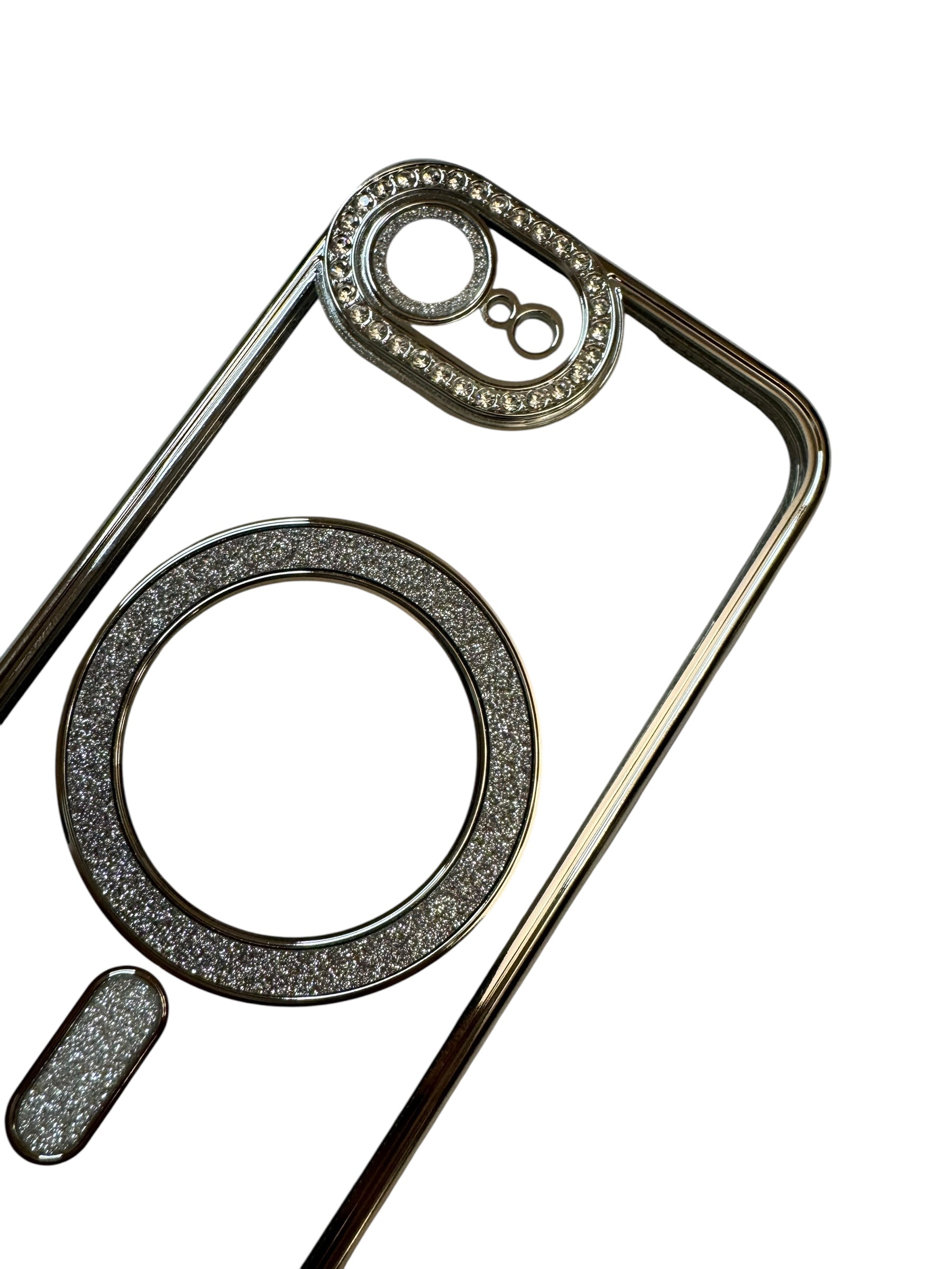 Carcasa iPhonr 16e Magsafe con brillos plateado